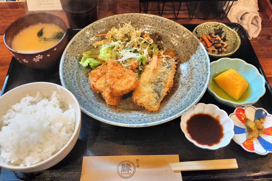 ソースかつ丼(870円)にそばを追加(+300円)。 昼時は過ぎていたものの店内は満員の状態。 駐車場に止まる車も関東各地から訪れているようだ。 あっさりしたソースが美味。