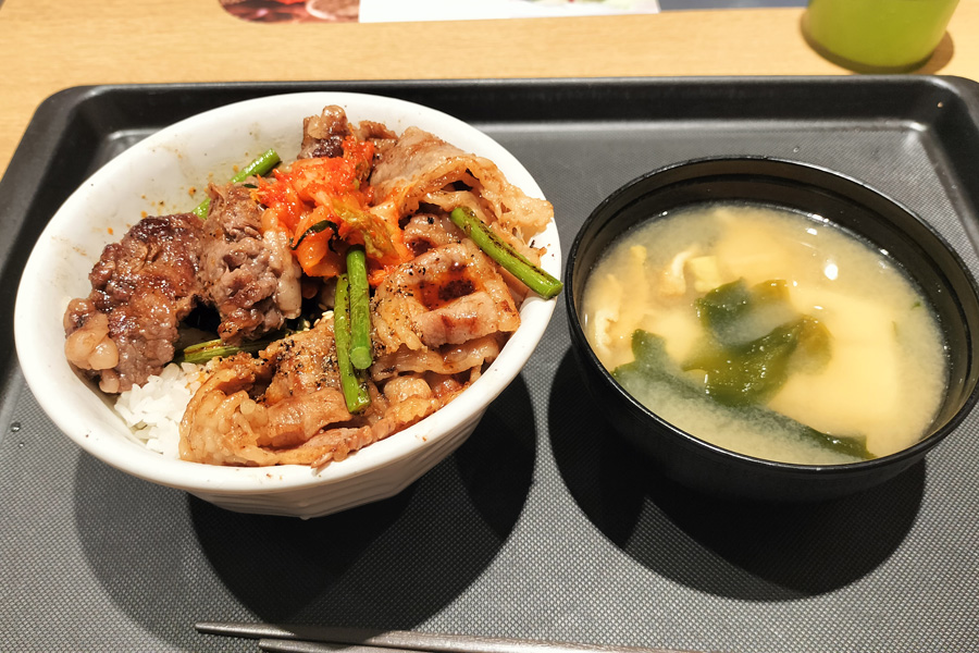 2024年1月の期間限定メニュー。 ひとつの丼にカツ丼、牛丼、親子丼がのった、かつやでしか出されないようなわんぱくなメニュー。 どの具材も美味しく、食べていて楽しい。