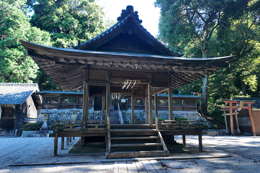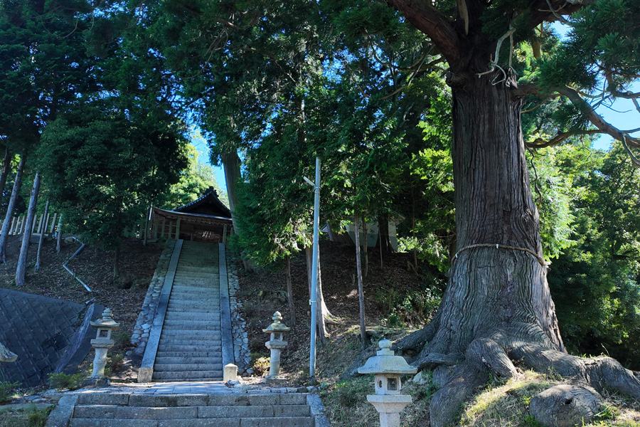 滋賀県甲賀市南部の県道135号で上馬杉地区を走行していると道路脇に「太子堂」の大きな案内板があり、その脇に鳥居が立ち、石段が山の上に延びている。 石段の脇には「油日神社」と掘られた石柱。鳥居の扁額には「油日神社」とある。しかし、眼の前の案内板が「太子堂」と表記されているため、後日改めて調べてみるまで、この場所が太子堂だと思い込んでいた。 しかも油日神社も「あぶらひ」ではなく、「ゆひ」と呼ぶという話もある。石段の脇には高さ30mほどの立派な杉が立っている。