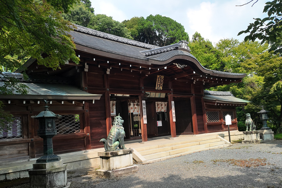 京都市山科区の南西地域。 第二京阪道路の山科入口から100m程度南の場所にあり、 石の鳥居をくぐった先に鎮座する。 この神社に祀られているのは大石内蔵助。 それゆえ創建も昭和10年と比較的新しい神社だ。 社務所脇には、忠臣蔵博物館が併設され、見学することができる。