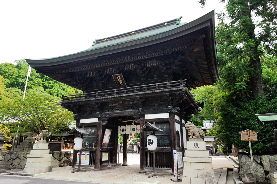 日牟禮八幡宮は、近江八幡市にある八幡山の麓、 バームクーヘンで有名なクラブハリエのすぐ前に鎮座する。 到着したのは朝9時ということで、 神社鳥居の前の駐車場も特等席に駐車することができた。 参拝客も疎らであったため、十分に神社を堪能できた。 この後、八幡山山頂を往復し戻ってきたときは、 駐車場は止めるスペースがなく、人もごった返していた。 朝一で参拝したのは大正解。