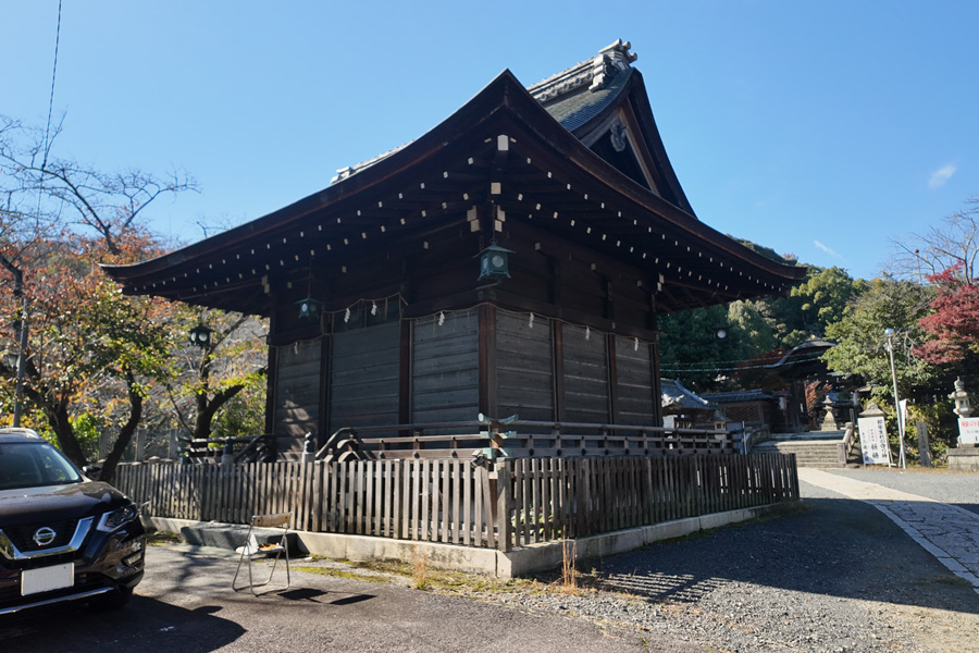 三尾神社は、大津市にある古刹「三井寺」南院の鎮守社である神社で、 琵琶湖疏水のすぐ脇に鎮座している。 三尾神社境内の拝殿の周りは月極駐車場と参拝者向けの駐車場となっているが 小規模で台数にも限りがあるので、三井寺参拝に合わせて参拝した。