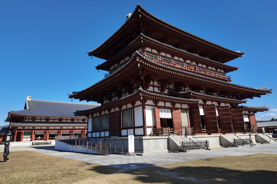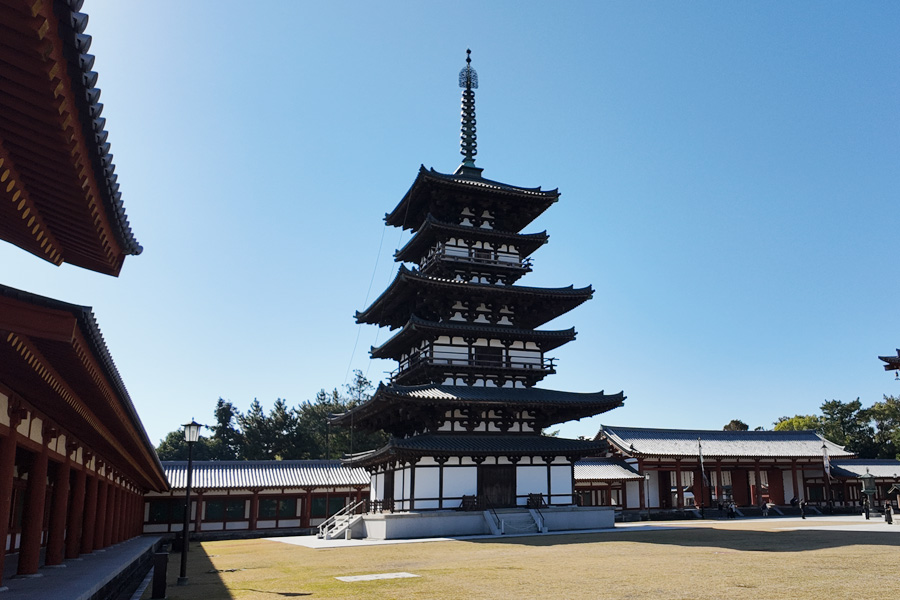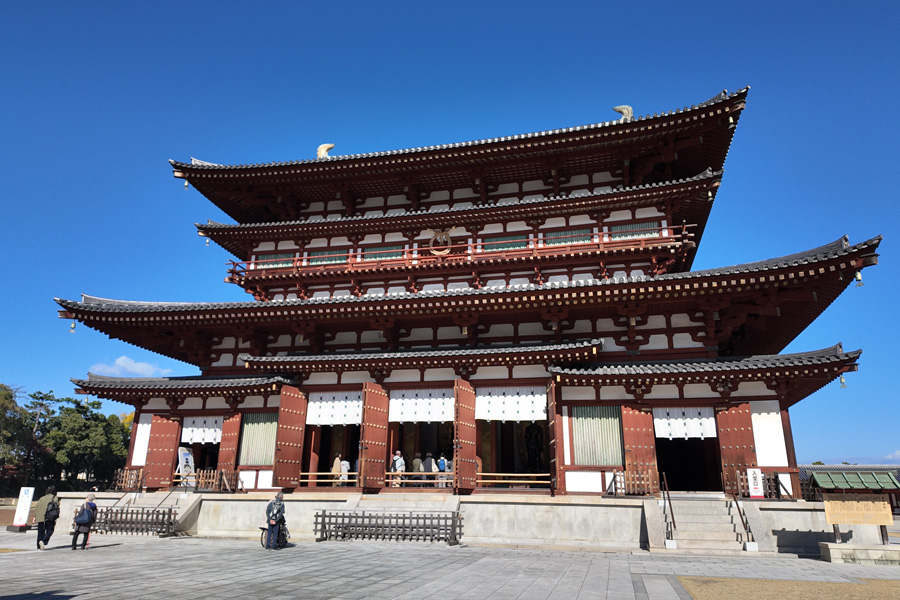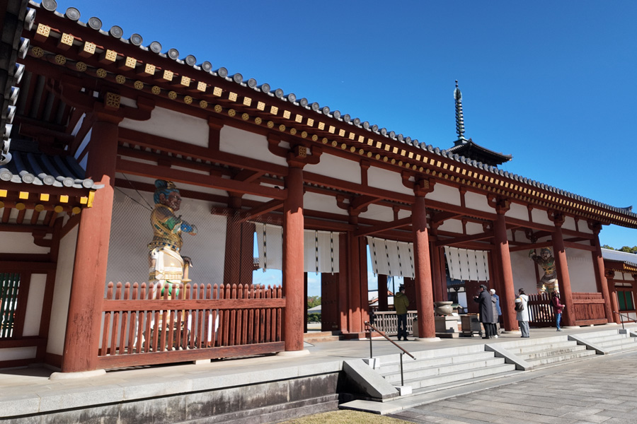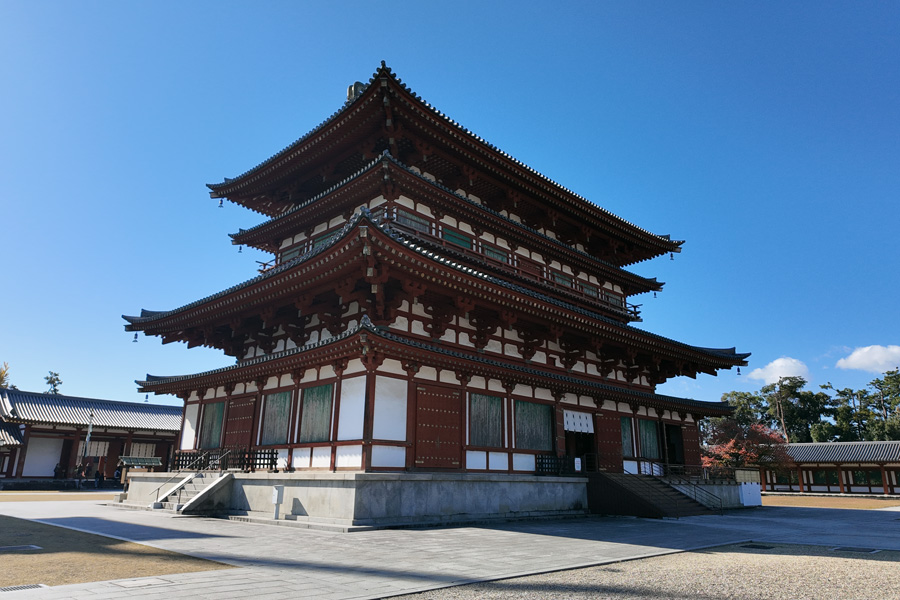 世界遺産『古都奈良の文化財』の構成資産の一つ「薬師寺」。 近鉄「西ノ京駅」から徒歩数分で北側の入口「與楽門」から入場。 3連休初日の行楽日和だったが、参拝客は少なく、十分に堪能できた。