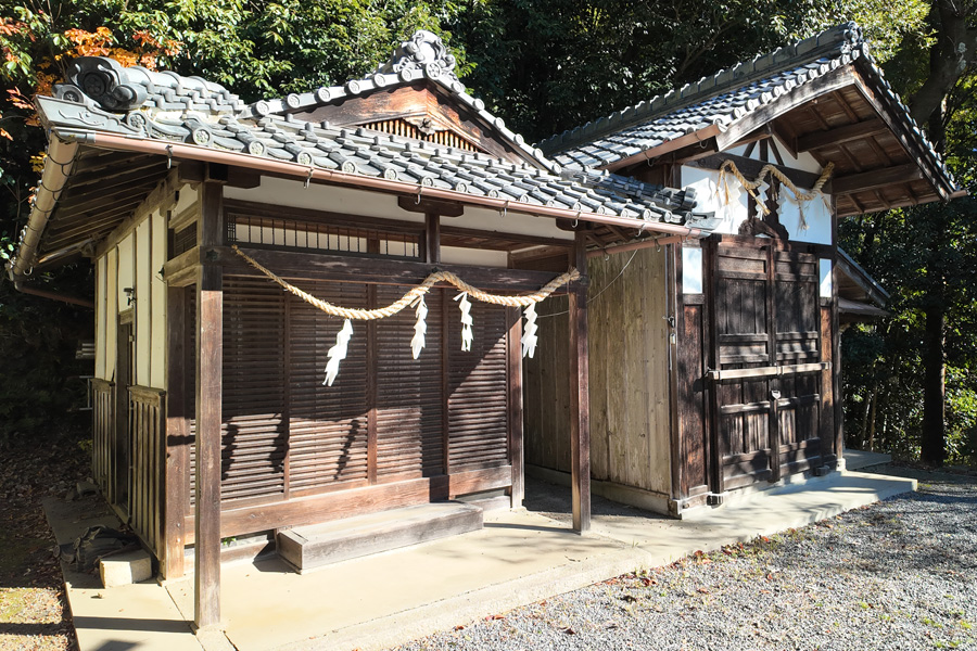 大津市坂本の町を走った際に偶然見つけた神社。野球のグラウンドの道挟んで反対側に鳥居が立つ。