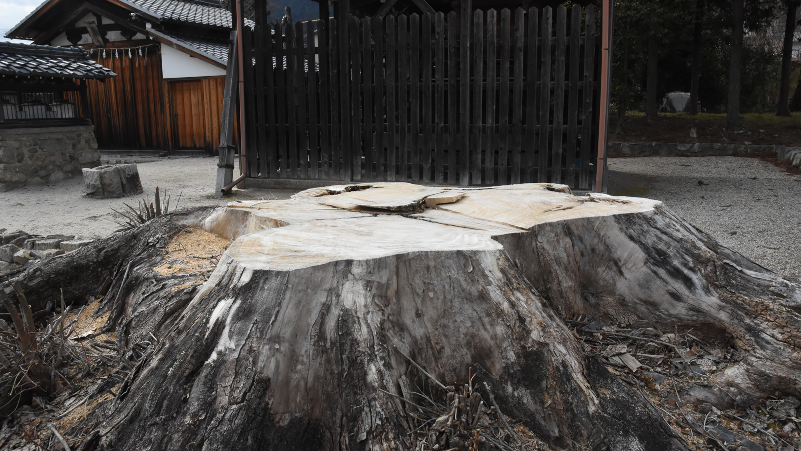 境内に残る切り株